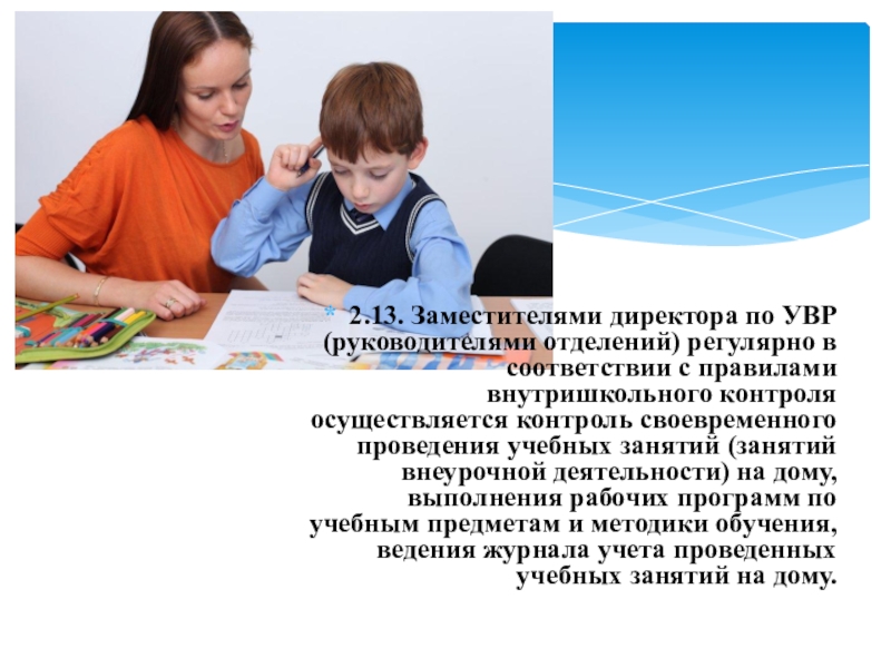 Слайд 142.13. Заместителями директора по УВР (руководителями отделений) регулярно в соответствии с