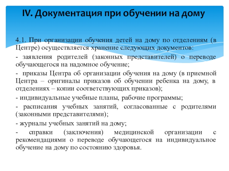 IV. Документация при обучении на дому