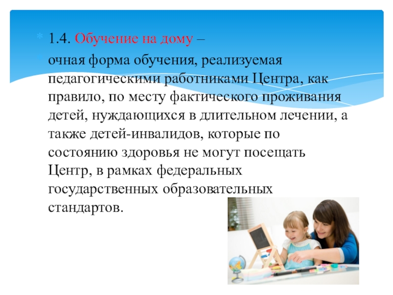 Слайд 51.4. Обучение на дому –