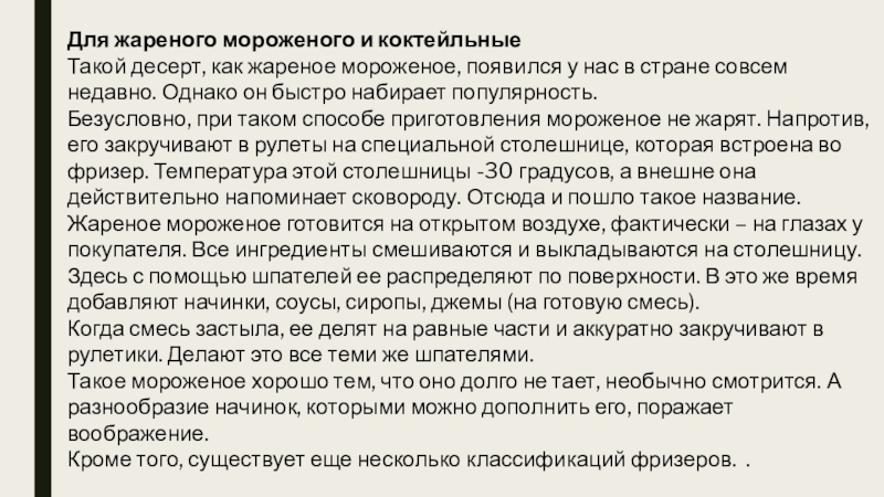 Слайд 22Для жареного мороженого и коктейльные