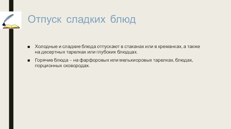Отпуск горячих и холодных сладких блюд