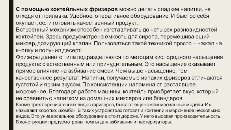 Слайд 23С помощью коктейльных фризеров можно делать сладкие напитки, не отходя от