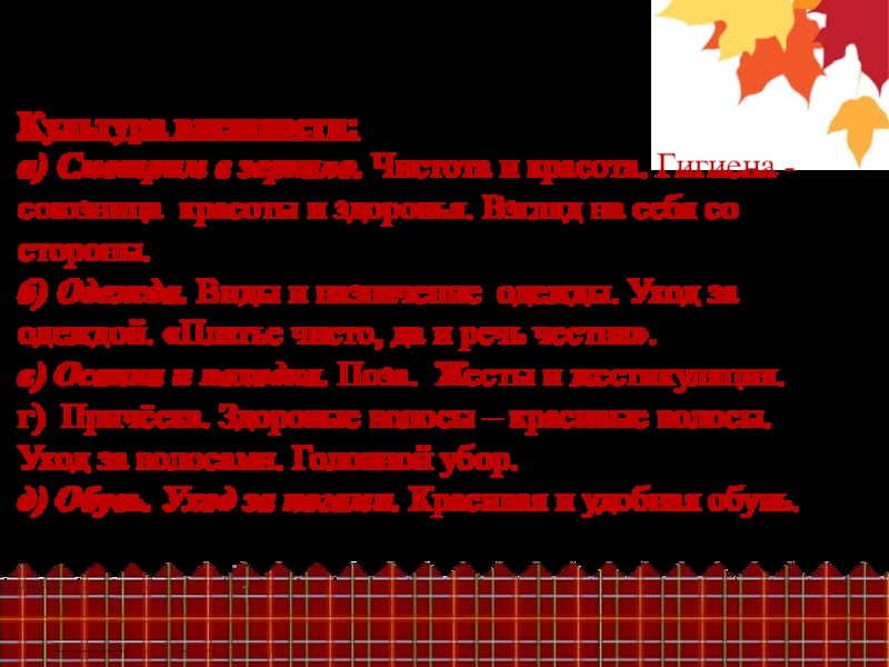 - культура внешности;