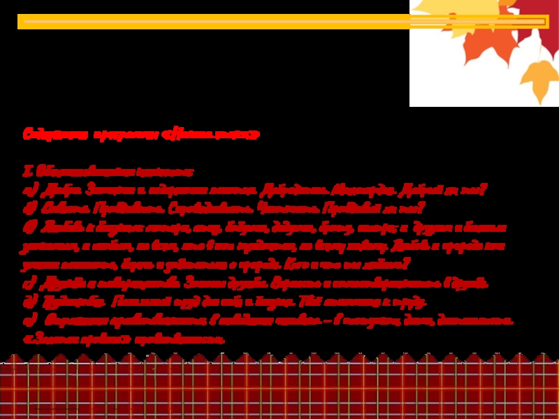 в) Любовь к близким: матери, отцу, бабушке, дедушке, брату, сестре; к друзьям и близким знакомым, к слабым, ко всем, кто в нас нуждается, ко всему живому. Любовь к природе как умение понимать, беречь и заботиться о природе. Кого и что ты любишь?