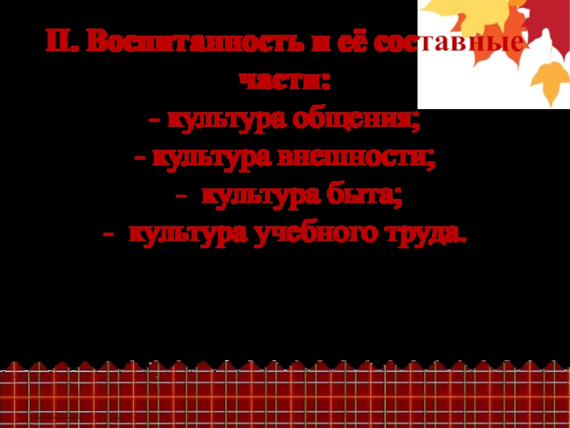II. Воспитанность и её составные части: