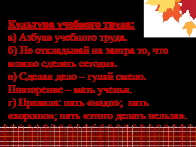 Слайд 9Культура учебного труда:
