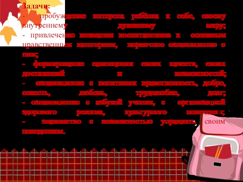 - пробуждение интереса ребёнка к себе, своему внутреннему духовному миру;