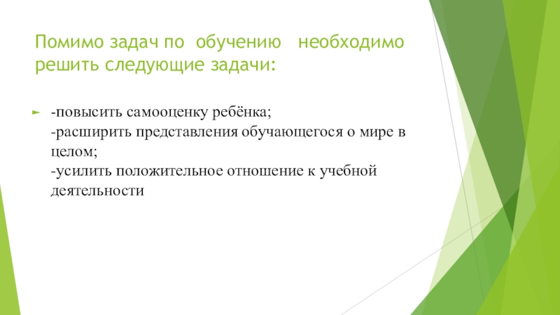 Слайд 5Помимо задач по обучению необходимо решить следующие задачи: