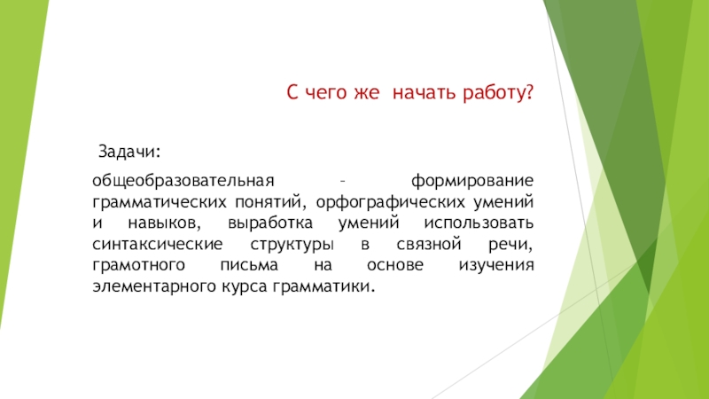 понятий, орфографических умений и навыков, выработка умений использовать синтаксические структуры в связной речи, грамотного письма на основе изучения элементарного курса грамматики.