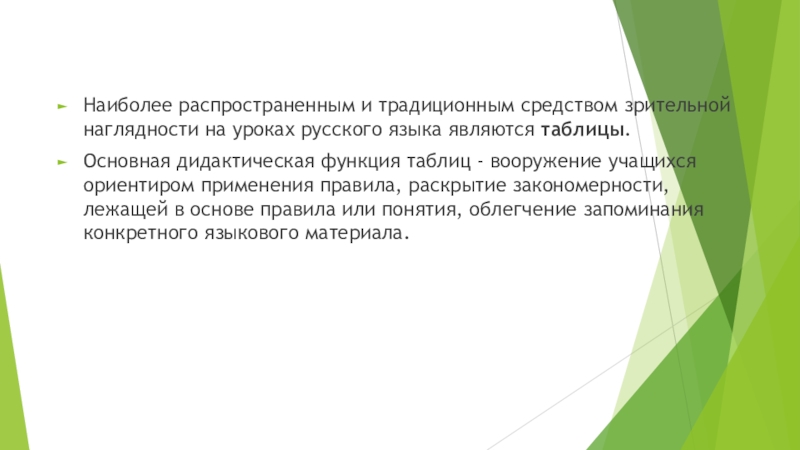 Слайд 9Наиболее распространенным и традиционным средством зрительной наглядности на уроках русского языка
