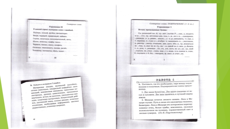 3) задания, направленные на предупреждение грамматических ошибок (нарушение норм русского литературного языка): образовать те или иные формы, составить словосочетания и предложения, исправить ошибки; составление небольших связных высказываний (сделать подписи к рисункам, выбрать заголовок из ряда возможных, устно описать рисунок и т.п.).