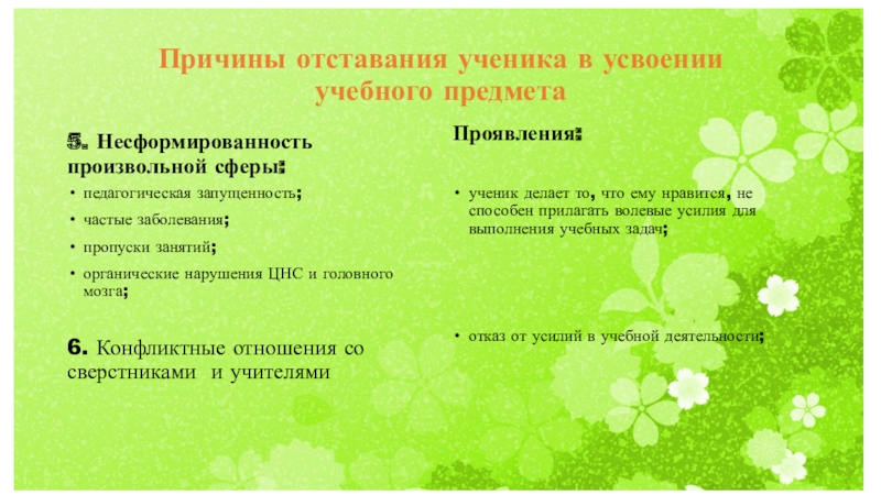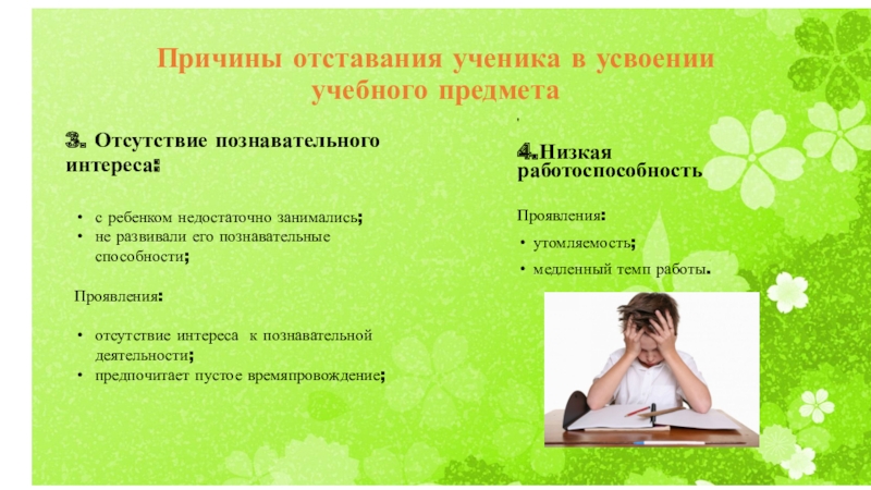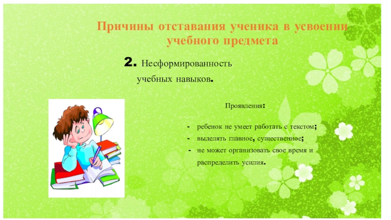 ученик делает то, что ему нравится, не способен прилагать волевые усилия для выполнения учебных задач;