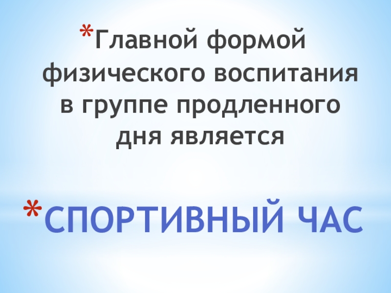 Слайд 1Организация спортивного часа в ГПД