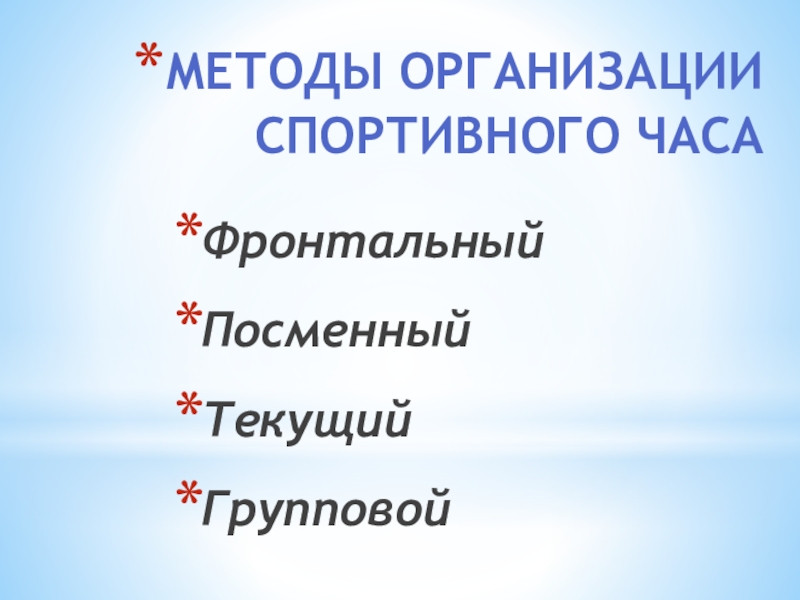 Слайд 8Методы организации спортивного часа