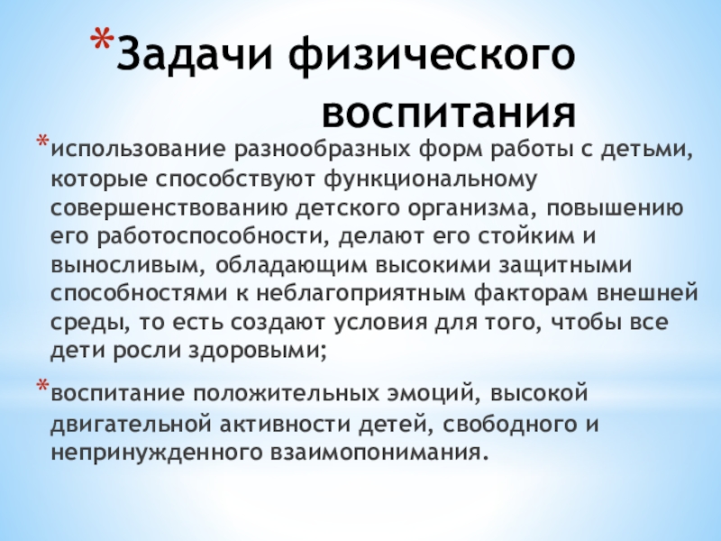Слайд 3Задачи физического воспитания