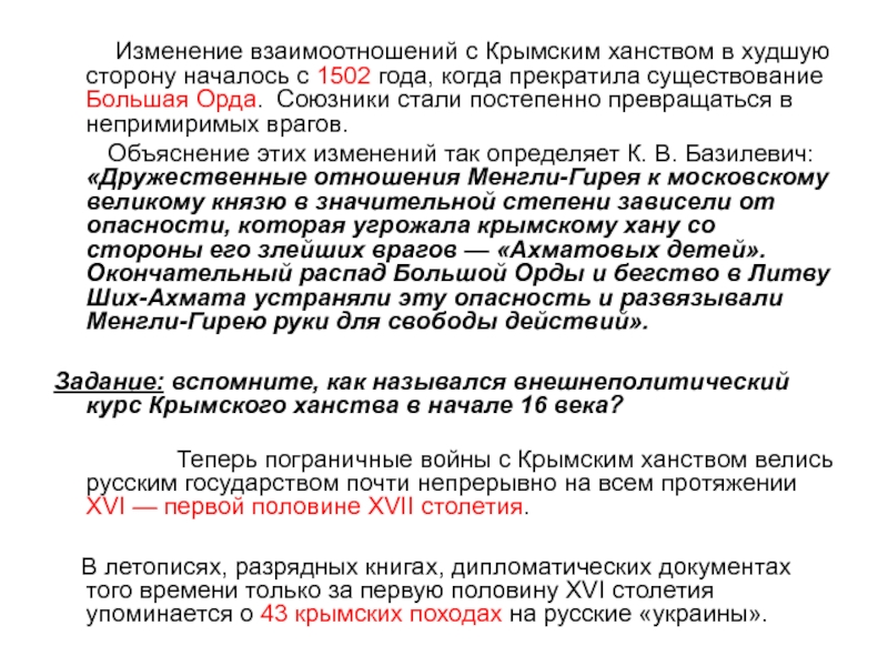 Слайд 23 Изменение взаимоотношений с Крымским ханством в худшую сторону началось с