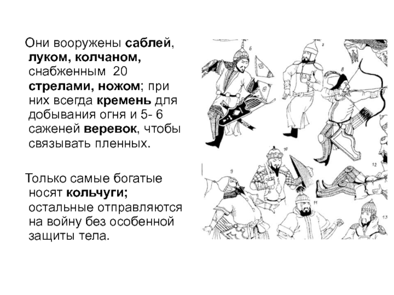 Только самые богатые носят кольчуги; остальные отправляются на войну без особенной защиты тела.