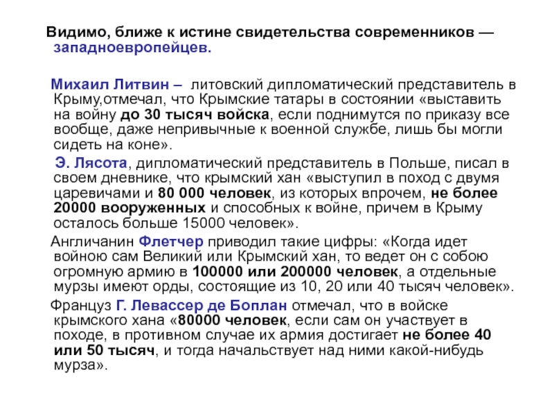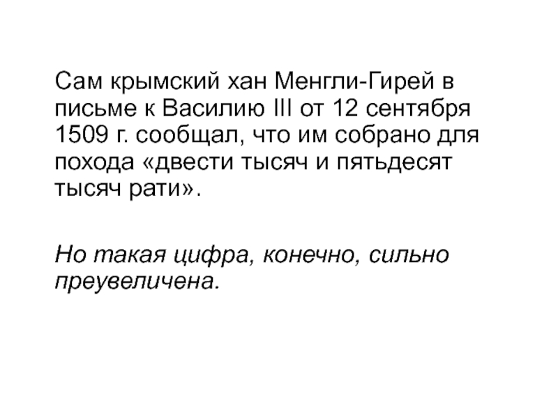 Слайд 5 Вопрос об общей численности войска крымского хана в достаточной мере