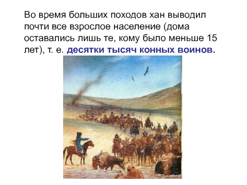 Слайд 4 Во время больших походов хан выводил почти все взрослое