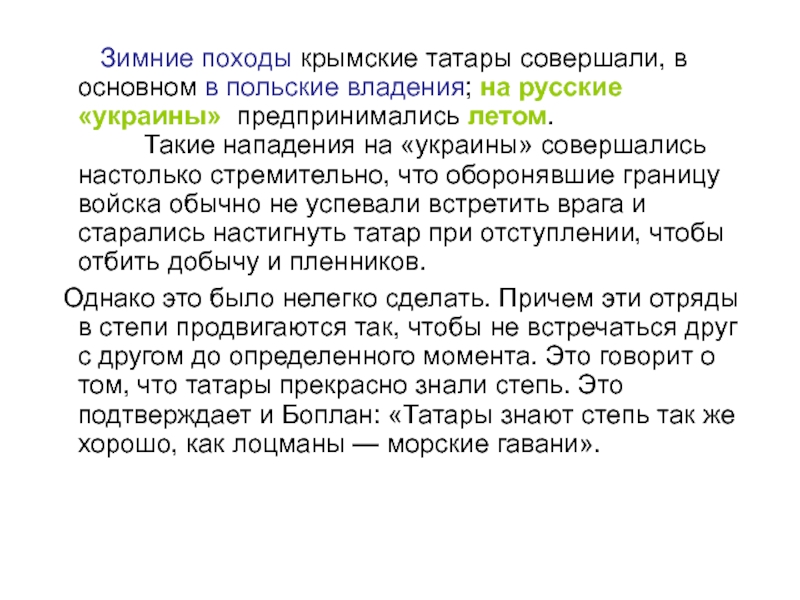 Слайд 20 Зимние походы крымские татары совершали, в основном