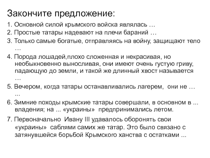 7. Первоначально Ивану III удавалось оборонять свои «украины» саблями самих же татар. Это было связано с затянувшейся борьбой Крымского ханства с остатками ...