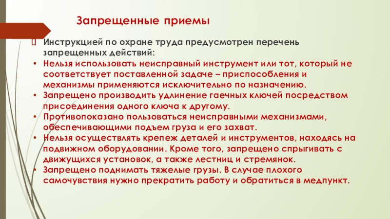 Инструкцией по охране труда предусмотрен перечень запрещенных действий: