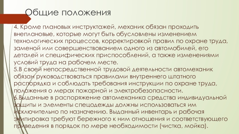 4. Кроме плановых инструктажей, механик обязан проходить внеплановые, которые могут