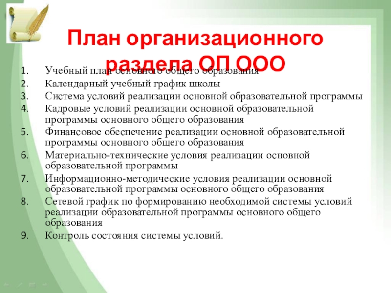 ОСНОВНАЯ ОВАТЕЛЬНАЯ ПРОГРАММА ОСНОВНОГО ОБЩЕГО ОБРАЗОВАНИЯ (ОРГАНИЗАЦИОННЫЙ РАЗДЕЛ)