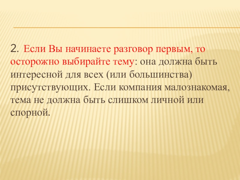 2. Если Вы начинаете разговор первым, то осторожно выбирайте тему: она должна быть интересной для всех (или