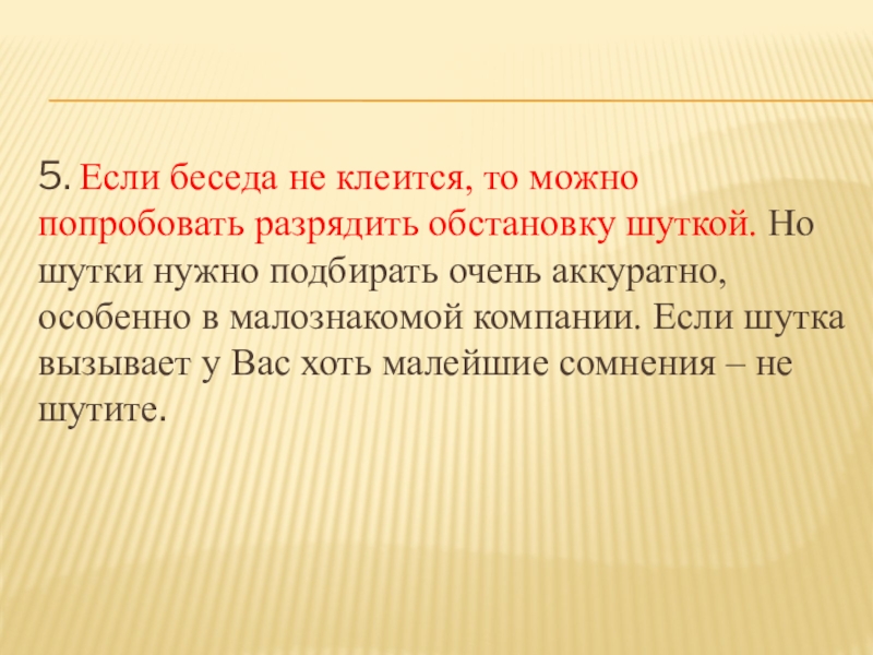 Слайд 65. Если беседа не клеится, то можно попробовать разрядить обстановку шуткой.
