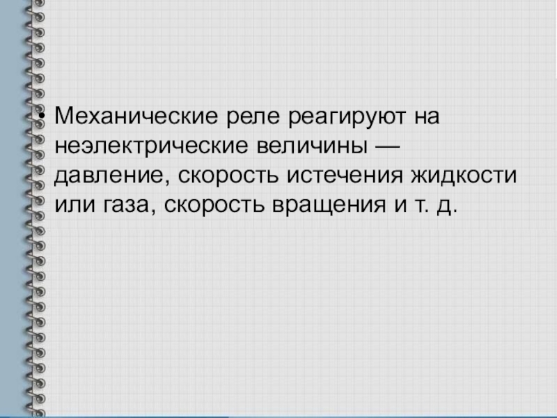 Механические реле реагируют на неэлектрические величины — давление, скорость истечения жидкости