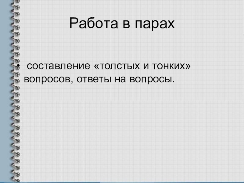 составление «толстых и тонких» вопросов, ответы на вопросы.