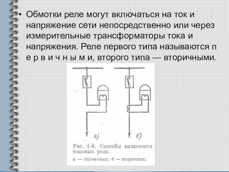 Слайд 22Обмотки реле могут включаться на ток и напряжение сети непосредственно или