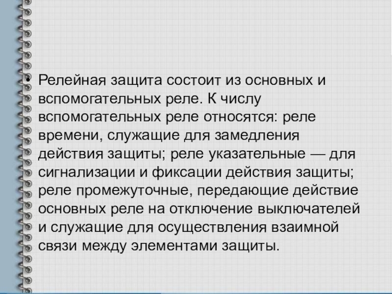 Релейная защита состоит из основных и вспомогательных реле. К числу вспомогательных