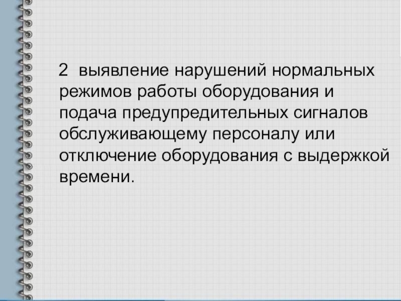 2 выявление нарушений нормальных режимов работы оборудования и подача