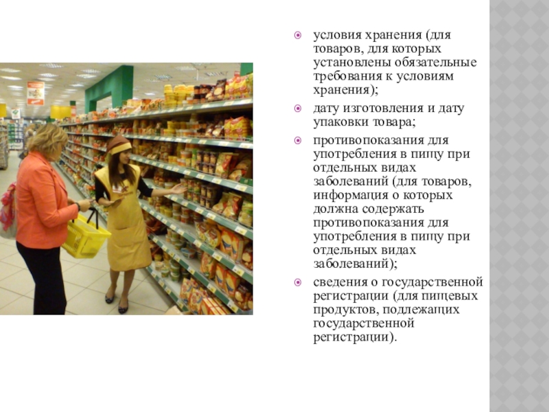 Слайд 10условия хранения (для товаров, для которых установлены обязательные требования к условиям