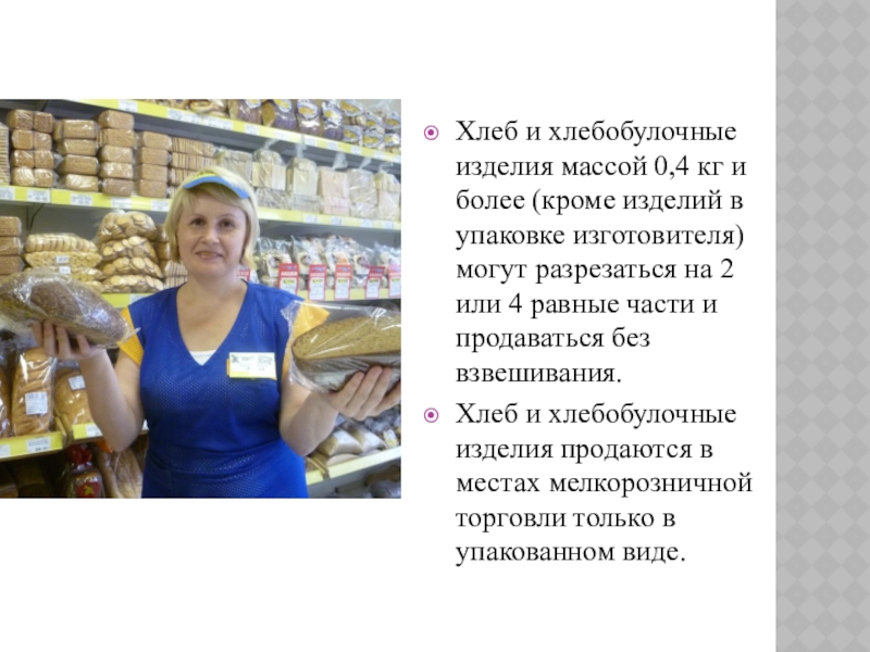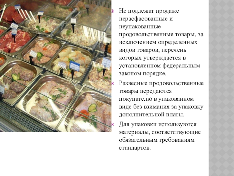 Слайд 15Не подлежат продаже нерасфасованные и неупакованные продовольственные товары, за исключением определенных