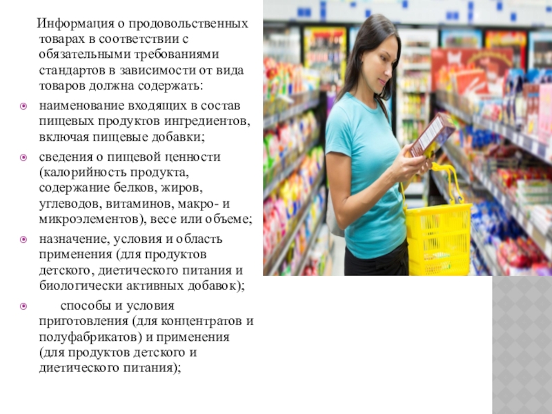 Слайд 9 Информация о продовольственных товарах в соответствии с обязательными требованиями