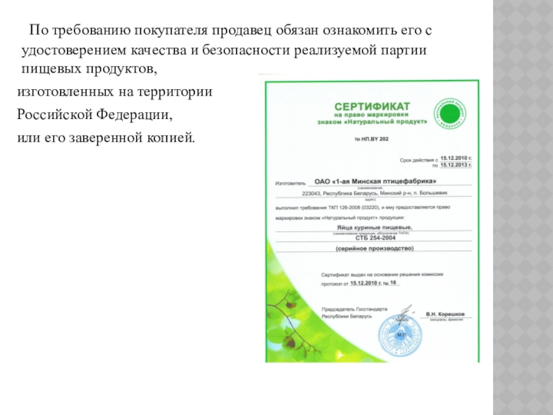 Слайд 11 По требованию покупателя продавец обязан ознакомить его с удостоверением