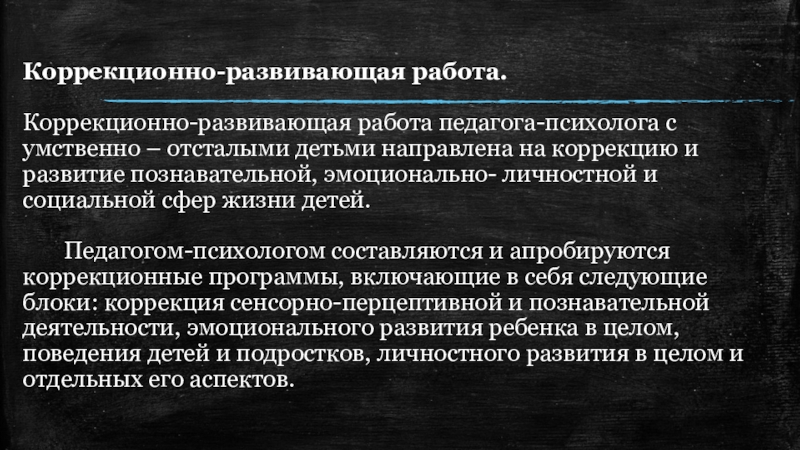 Коррекционно-развивающая работа педагога-психолога с умственно – отсталыми детьми направлена на