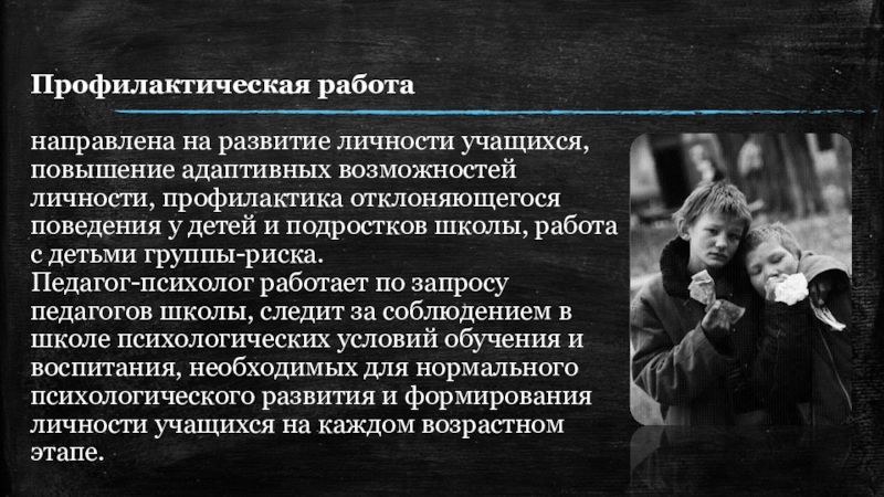 отклоняющегося поведения у детей и подростков школы, работа с детьми группы-риска.