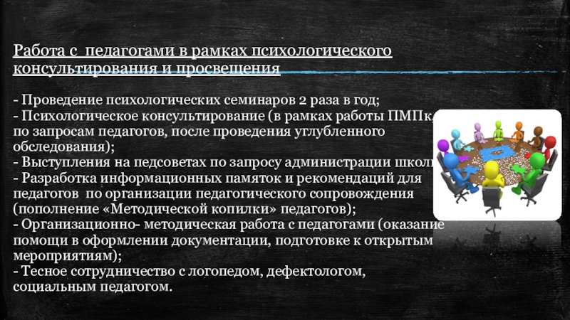Слайд 14Работа с педагогами в рамках психологического консультирования и просвещения