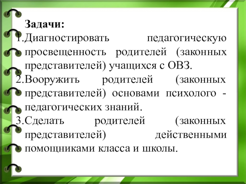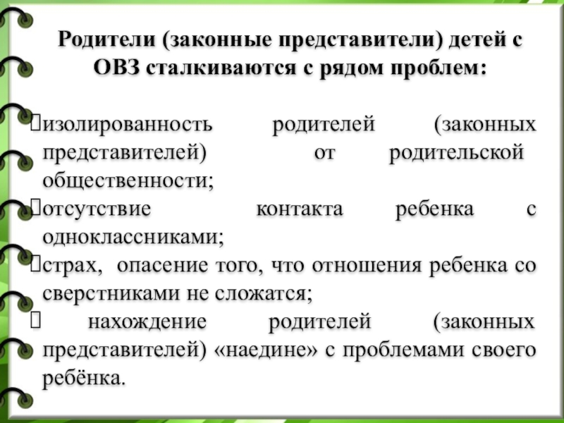 Родители (законные представители) детей с ОВЗ сталкиваются с рядом проблем: