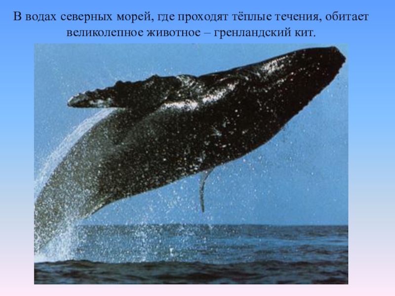 В водах северных морей, где проходят тёплые течения, обитает великолепное животное – гренландский кит.