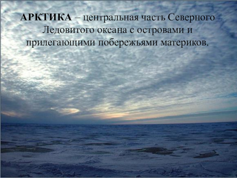 Слайд 2АРКТИКА – центральная часть Северного Ледовитого океана с островами и прилегающими