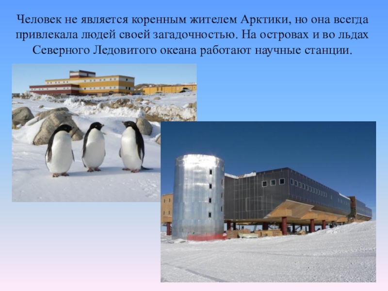 Слайд 11Человек не является коренным жителем Арктики, но она всегда привлекала людей
