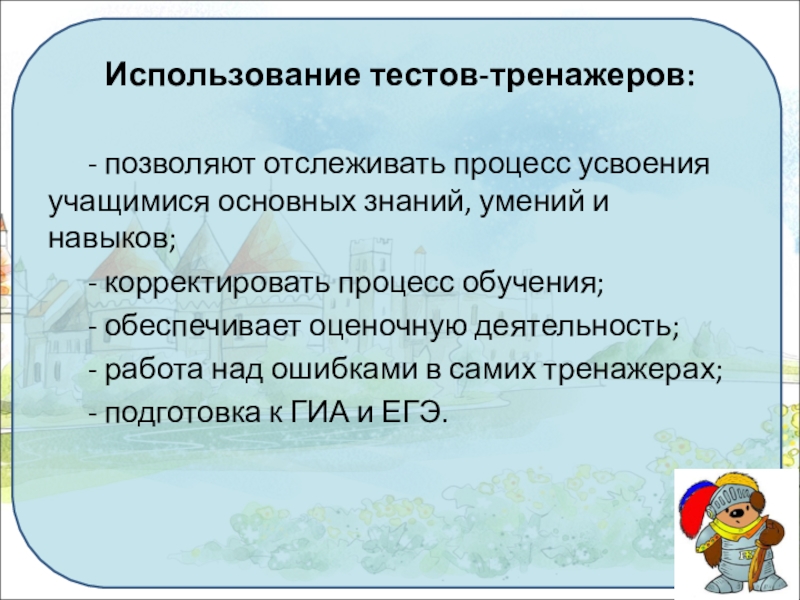 - позволяют отслеживать процесс усвоения учащимися основных знаний, умений и