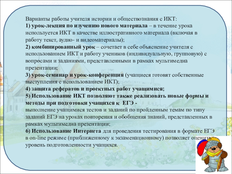 Слайд 6Варианты работы учителя истории и обществознания с ИКТ: