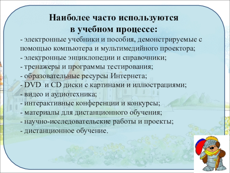 нового материала – в течение урока используется ИКТ в качестве иллюстративного материала (включая в работу текст, аудио- и видеоматериалы);