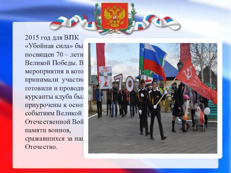 Слайд 22015 год для ВПК «Убойная сила» был посвящен 70 – летию